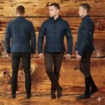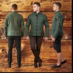 Designed with the characteristic “grand assiette” (deep-set) sleeves and a tapered waist, ensuring the garment stays in place and does not “ride up” when the arms are raised.