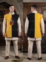 Command the battlefield or the banquet hall with this premium Handmade Medieval Surcoat. Designed for the modern knight, the KFA-1048 combines historical “Mi-Parti” (two-tone) aesthetics with high-quality natural fabrics, making it an essential piece for any historical or fantasy kit.