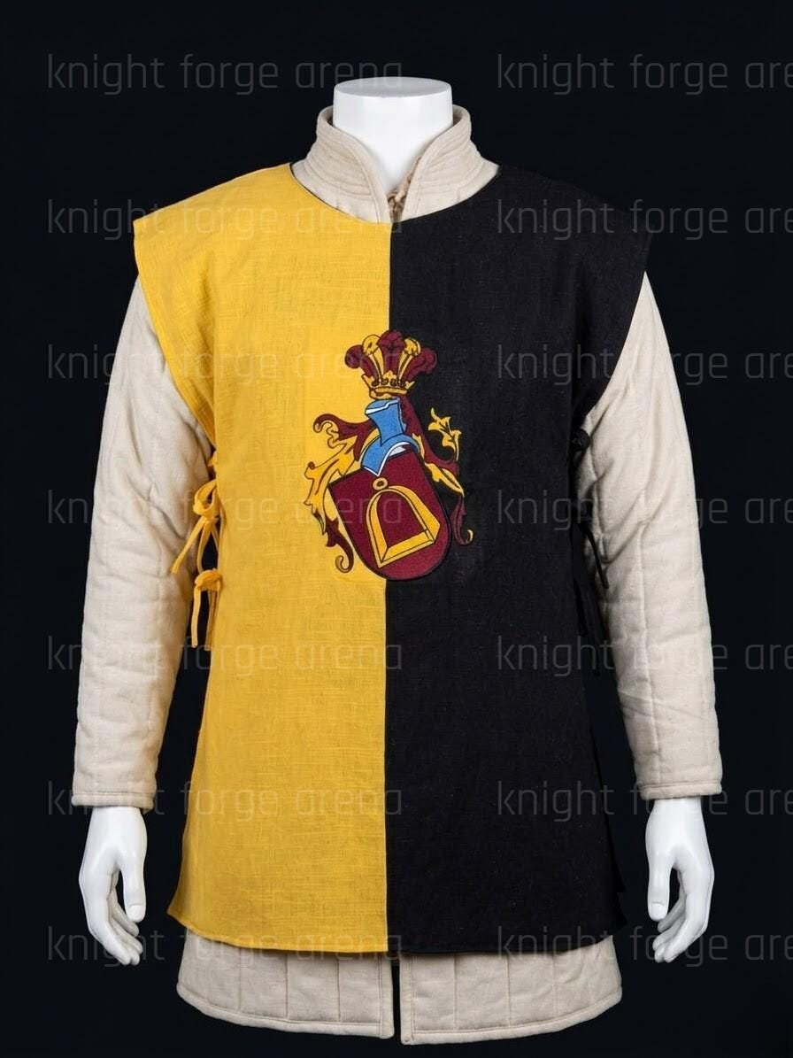 Custom Heraldry Embroidered Medieval Linen Surcoat – Two-Tone Knight’s Tabard KFA-1048