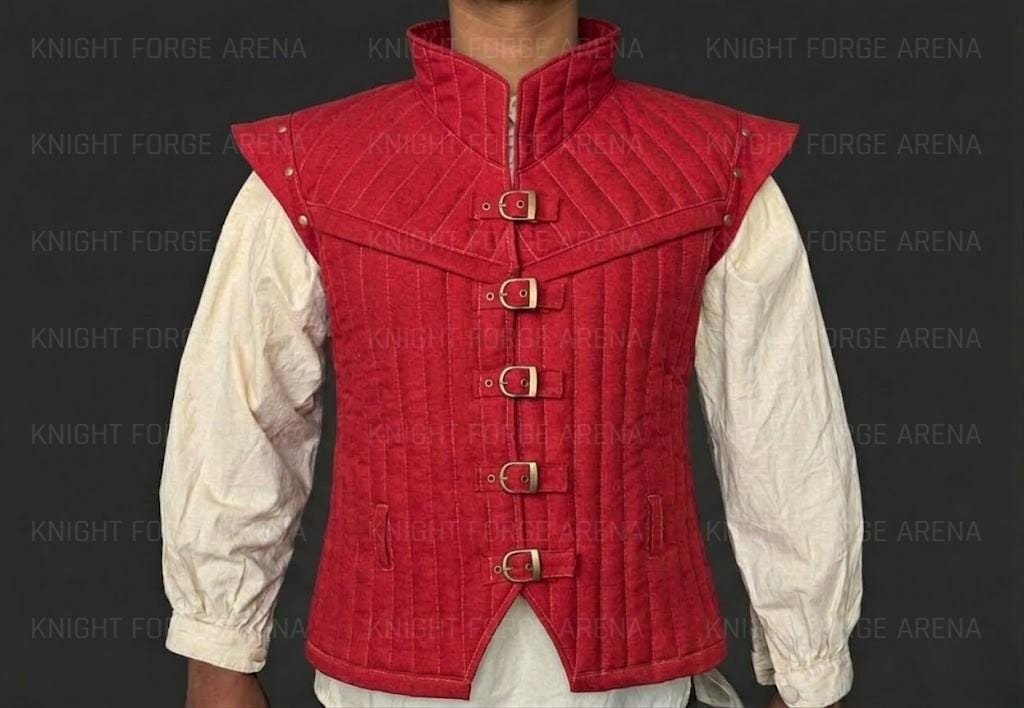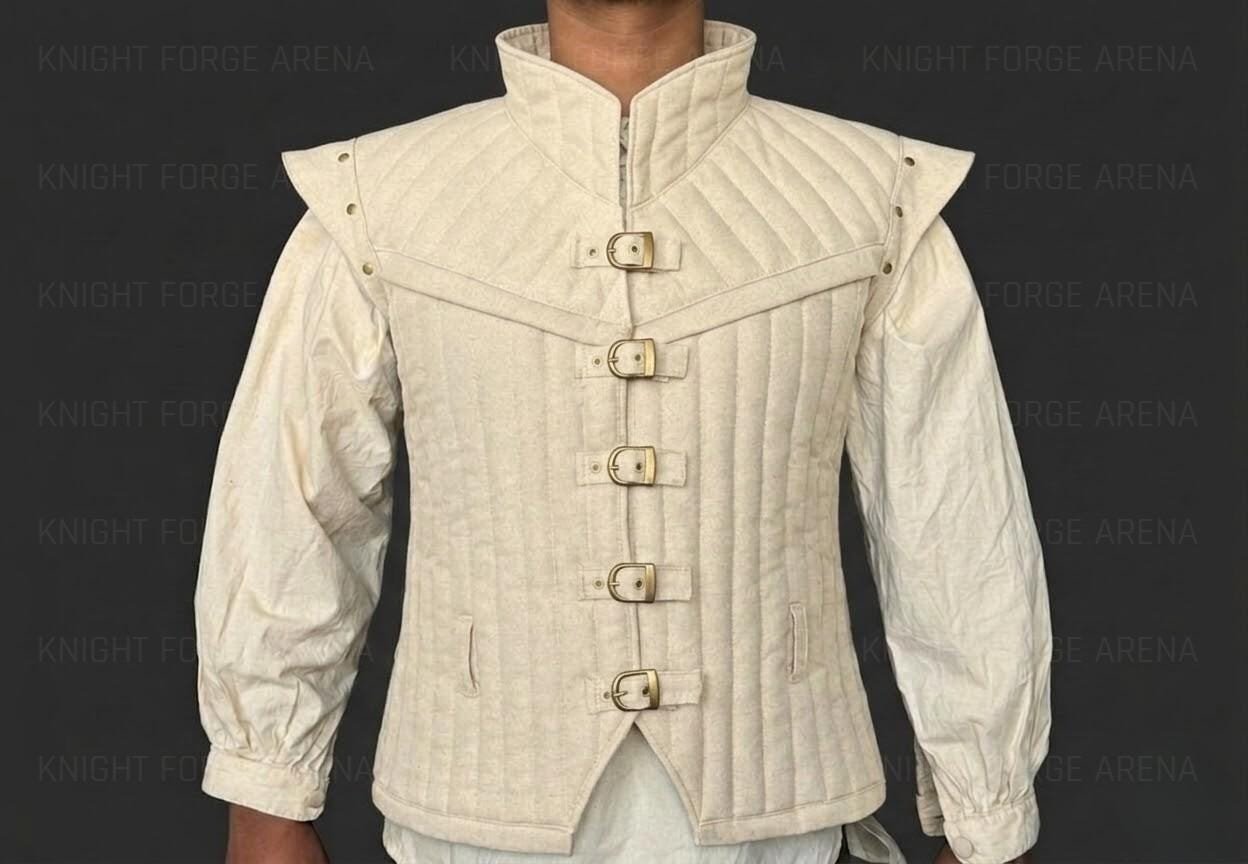 Authentic Padding: Featuring vertical quilted padding that gives the garment a structured, high-end feel, mimicking historical gambesons and jerkins.