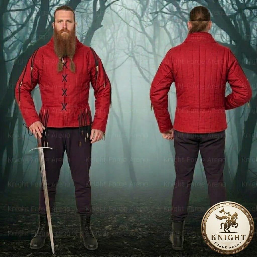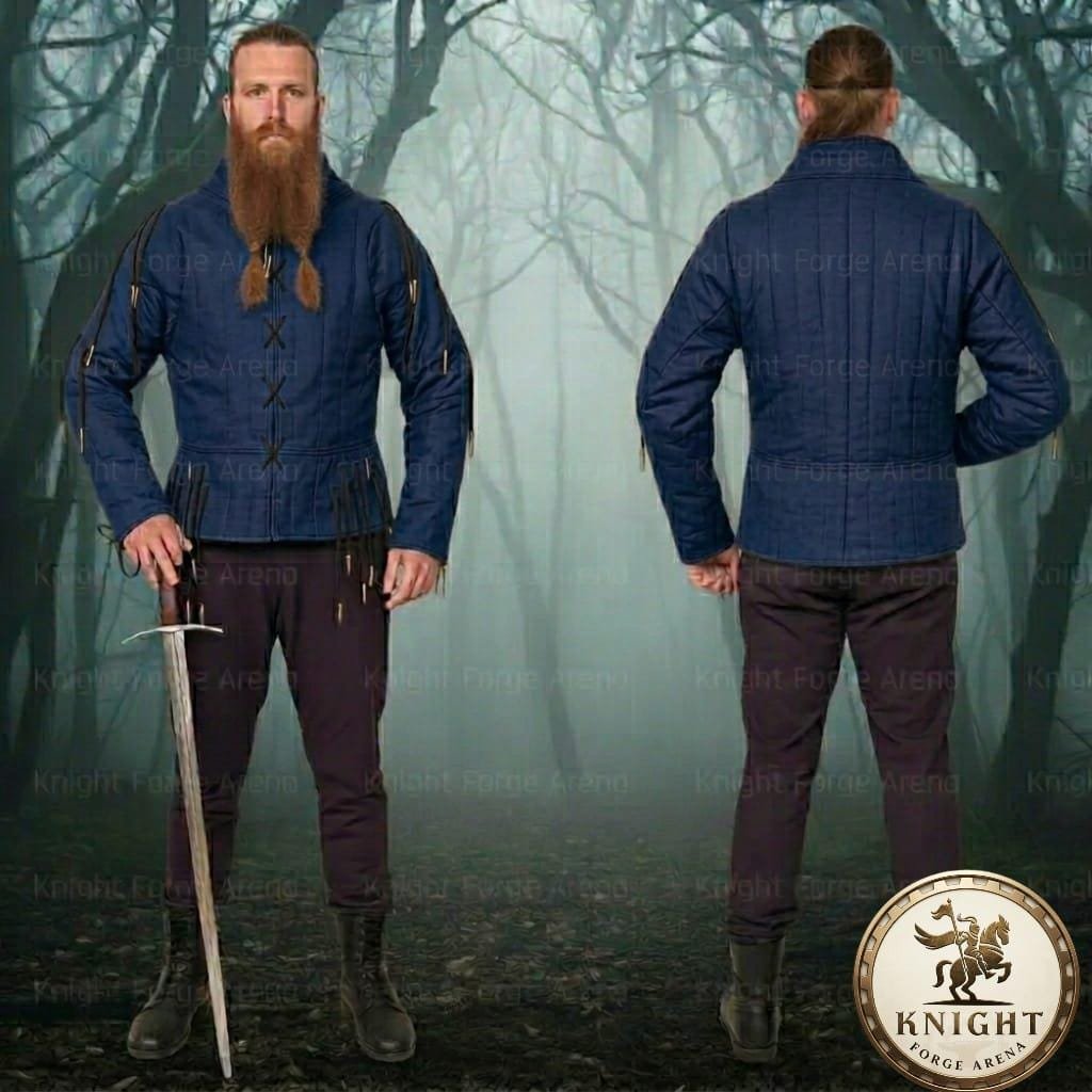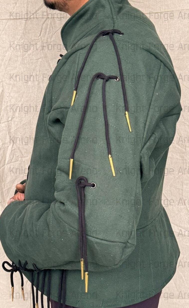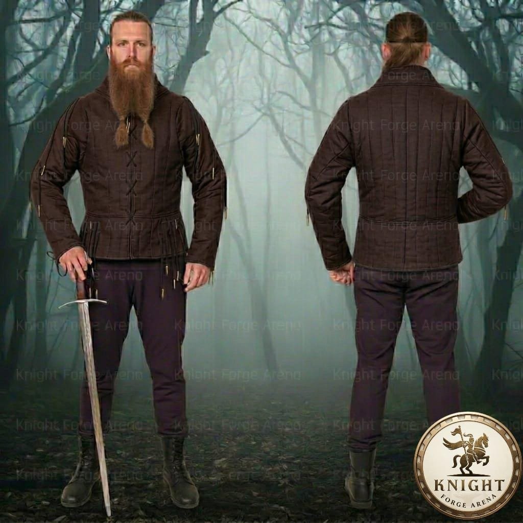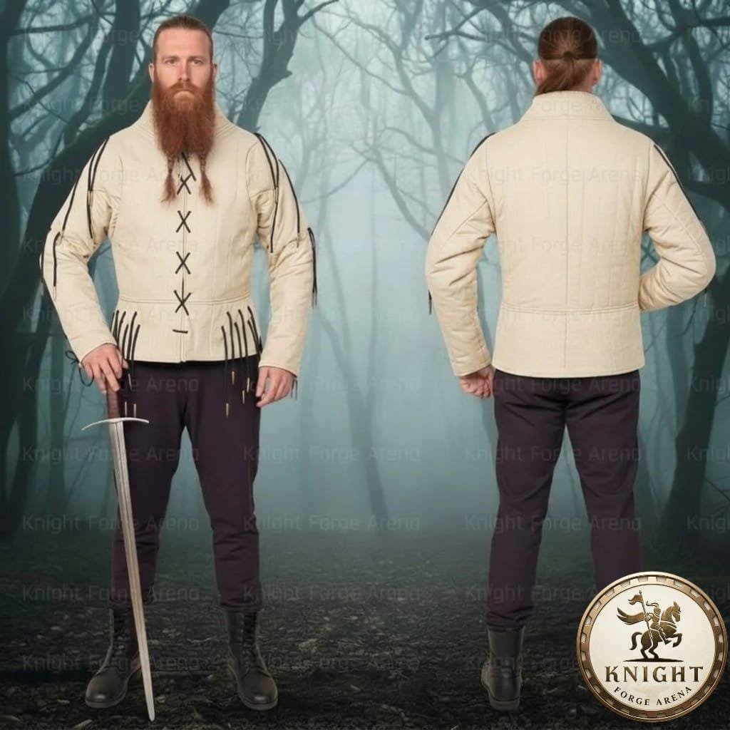 Handcrafted 14th Century Arming Doublet | Historical Padded JacketExperience the perfect blend of medieval utility and noble style. The KFA-1016 Arming Doublet is an expertly tailored garment designed for the modern historian. Whether you are layering it under a suit of plate armor or wearing it as a standalone piece at a Renaissance faire, this doublet provides the authentic silhouette and protection required for 14th-century impressions.Key FeaturesAuthentic 14th-Century Tailoring: Designed with a slim fit and padded construction typical of the Late Middle Ages, ensuring a sharp, historical profile.Signature Brass Tips: Each lacing point is finished with elegant, durable brass tips (aiglets), making it easy to lace and adding a touch of period-correct sophistication.Handcrafted Durability: Constructed from heavy-duty, breathable fabric and reinforced stitching, this jacket is built to withstand the movement and friction of reenactment and combat sports.Versatile Functionality: An essential foundation for HEMA (Historical European Martial Arts), LARP, or high-end theatrical productions.Technical SpecificationsAttributeDetailModel NumberKFA-1016MaterialPremium Padded Textile (Canvas/Cotton Blend)HardwarePolished Brass Aglets/TipsEraLate 14th to Early 15th CenturyClosureFront-lacing for an adjustable, secure fitImportant NotesHistorical Foundation: This doublet is designed to be worn snugly to the body to support the weight of armor or to be worn as a structured civilian garment.Color Variance: Please note that the fabric color may vary slightly from the product images due to studio lighting, screen settings, and the artisanal dyeing process.Upgrade your kit today. The KFA-1016 is more than a costume—it is a piece of living history.