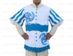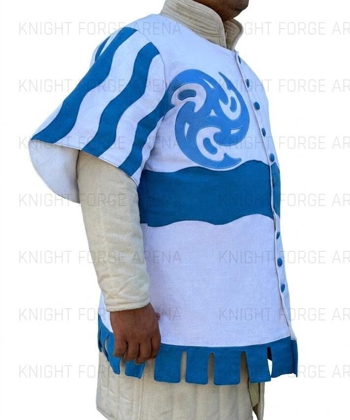 Set sail for your next adventure in authentic maritime style. Our Handcrafted Linen Pirate Surcoat is more than just a costume; it’s a statement piece for the modern privateer. Featuring a striking deep blue and crisp white color palette, this naval tunic is adorned with intricate nautical star and wave embroidery that captures the essence of the ocean’s power.