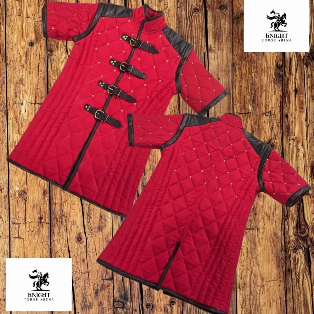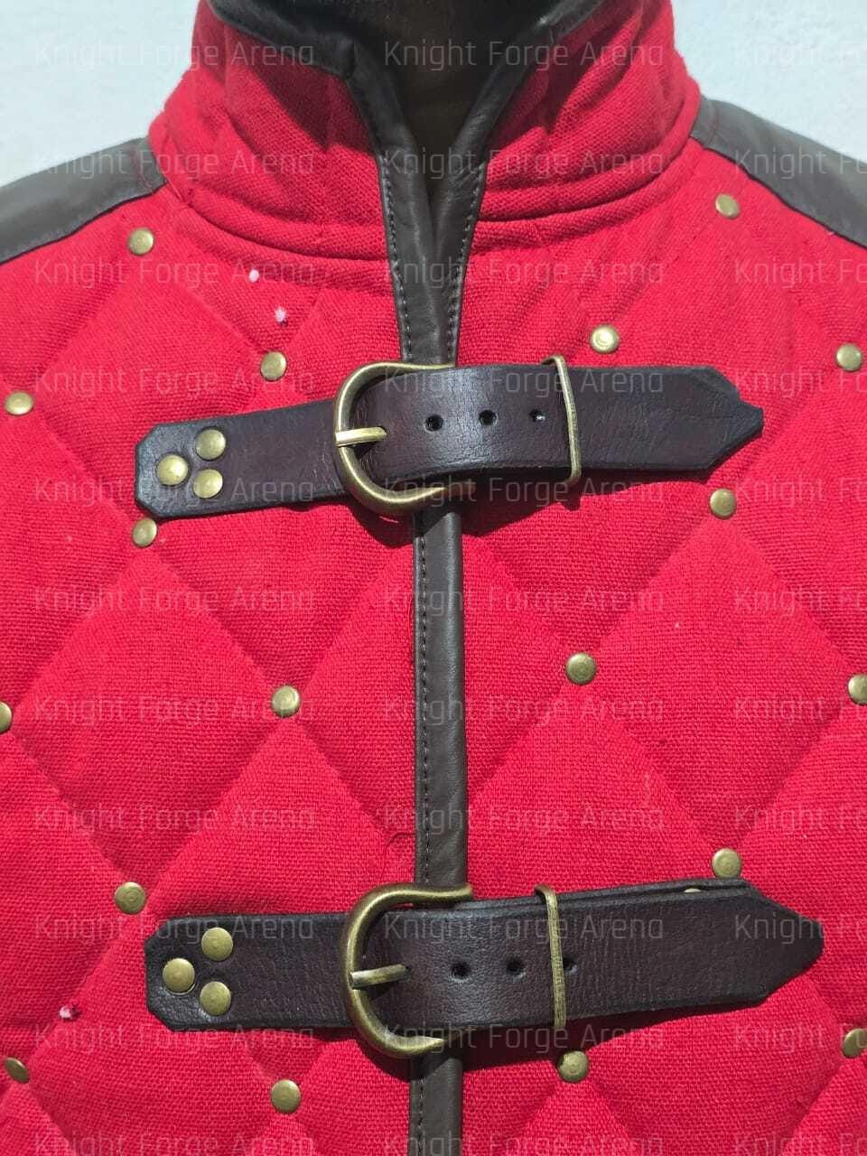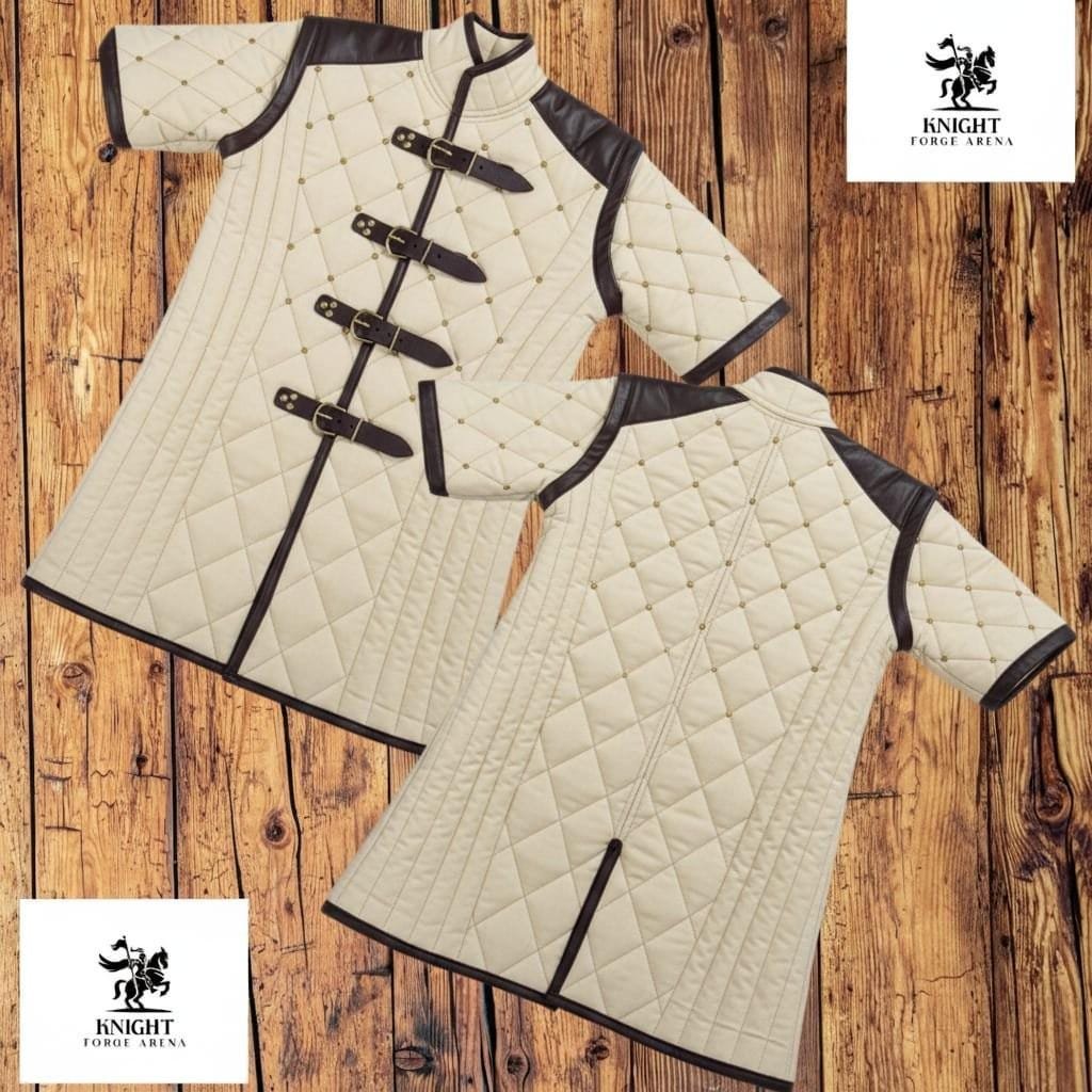 Handcrafted Viking Medieval Gambeson | Leather Detailed Armor Embrace the spirit of the North with the KFA-1006 Viking Gambeson. This rugged, handcrafted padded jack is designed for warriors who demand both protection and a commanding presence. Featuring premium leather accents, this gambeson serves as the ultimate defensive layer for Viking-age reenactments, LARP battles, or as an authentic foundation for heavy armor. Design & Craftsmanship Rugged Warrior Aesthetic: Unlike standard quilted jacks, the KFA-1006 features strategically placed leather details that provide extra durability and a distinct, tribal look. Superior Impact Protection: Constructed with multiple layers of high-quality padded cotton, designed to absorb shocks from blunted weapons or provide a cushioned barrier under chainmail. Mobile & Breathable: Engineered for the heat of battle. The tailored fit allows for a full range of motion in the shoulders and arms—essential for shield-wall maneuvers or swordplay. Period-Inspired Closure: Built with durable fastenings that maintain a secure fit during high-activity movement. Technical Specifications Feature Details Model NumberKFA-1006Primary -duty Padded Cotton Canvas Accents Genuine/Reinforced Leather Trim & Straps Historical Style Viking / Early Medieval / Norse Warrior Recommended Use HEMA, LARP, Viking Reenactment, Film/Stage Why Choose the KFA-1006?The transition from a simple tunic to a battle-ready warrior begins with your base layer. This gambeson doesn’t just look the part—it is built to withstand the rigors of the field. The leather reinforcement on high-wear areas ensures that your kit lasts through seasons of campaigning. Note on Craftsmanship: As each piece is handcrafted, slight variations in the leather grain and fabric shade may occur, making every gambeson uniquely yours .Complementary Gear To complete your Viking kit, this gambeson pairs perfectly with :Chainmail Hauberks (worn over the padding)Leather Bracers and Greaves Viking Spangenhelm or Spectacle Helmet.