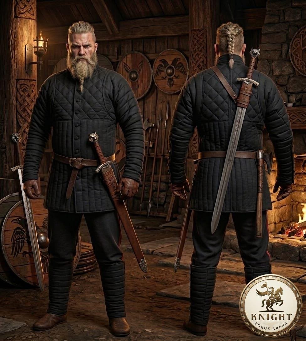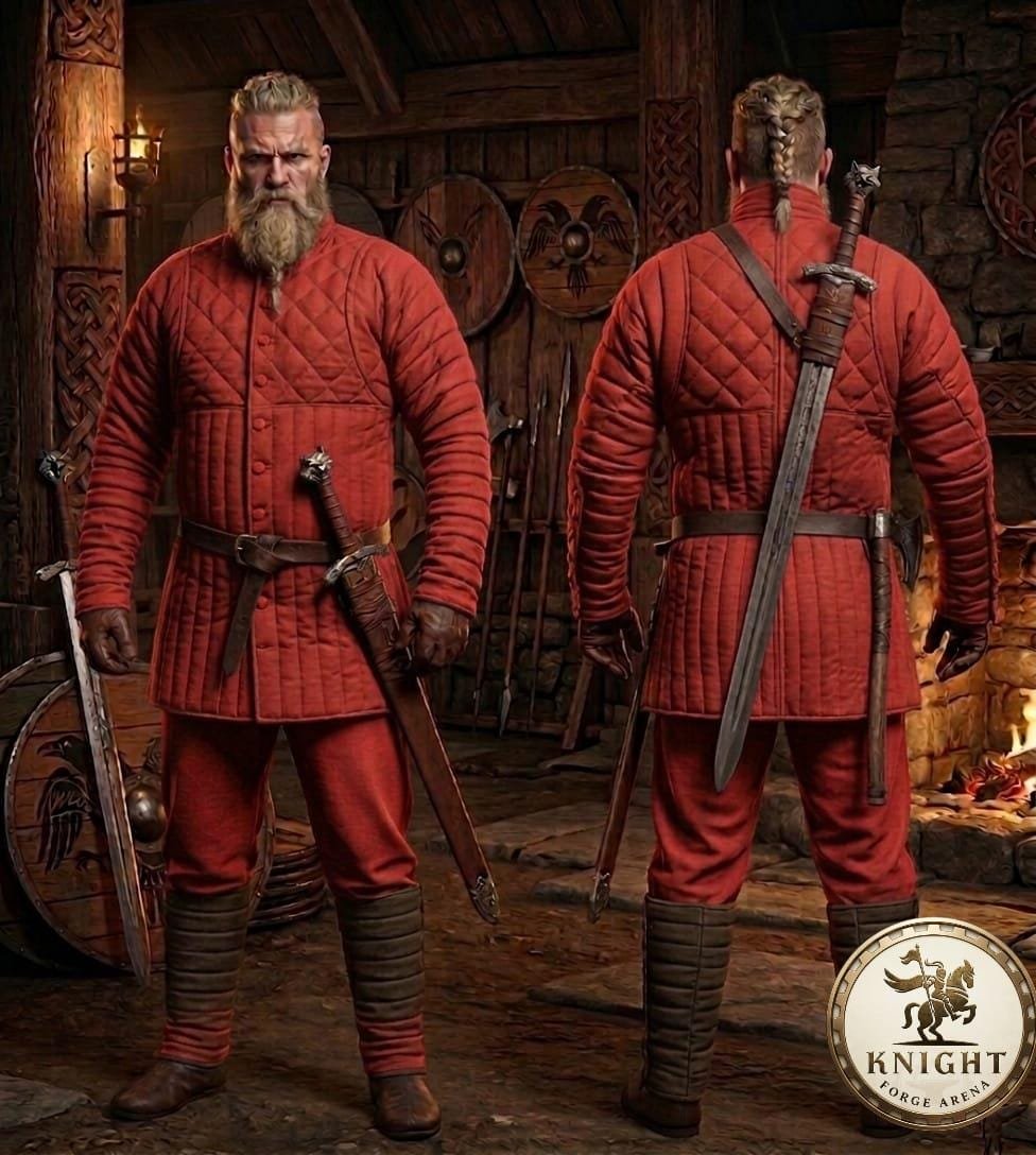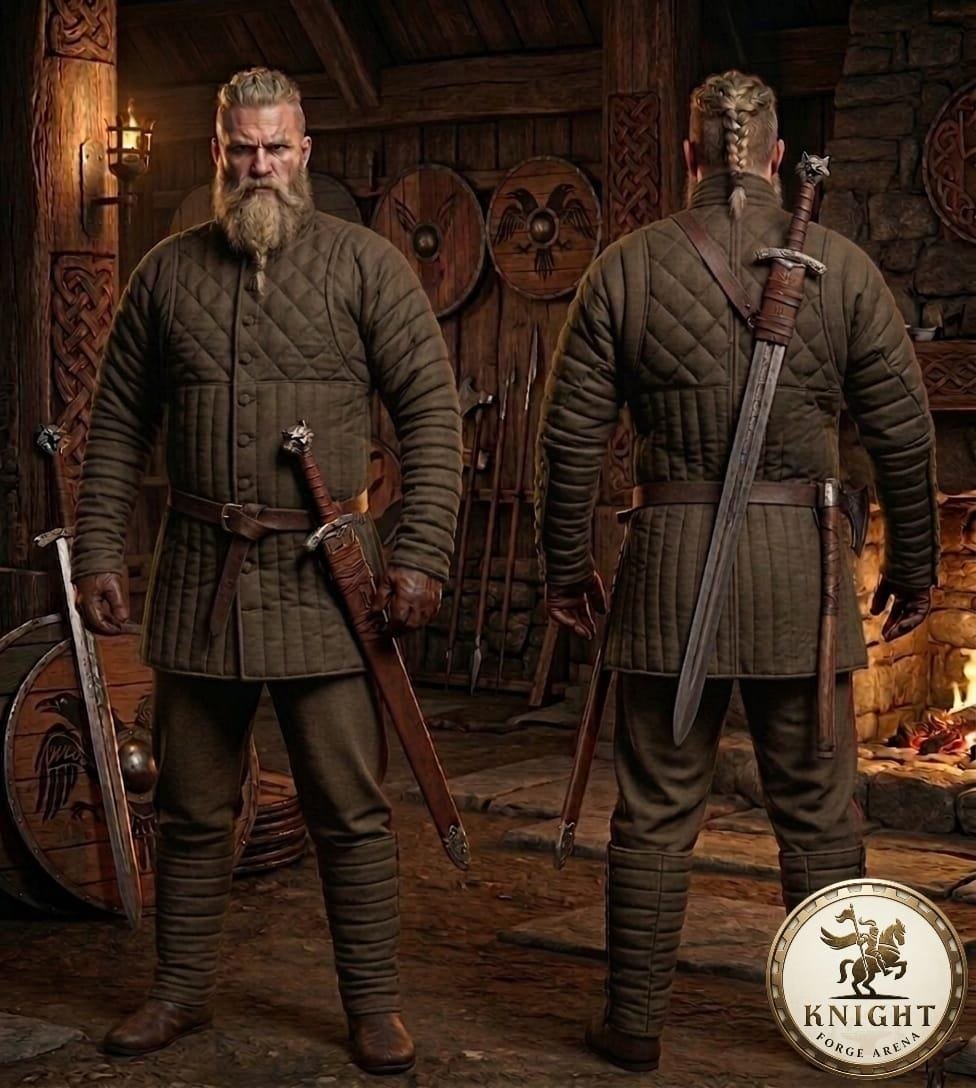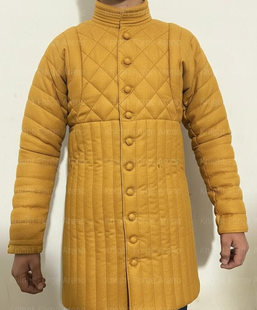 Handmade 14th Century Gambeson KFA-1011 | Heavy-Duty Combat Armor Step into the heart of history with the KFA-1011 14th Century Medieval Gambeson. This masterfully handcrafted padded armor jacket is the definitive choice for reenactors, HEMA practitioners, and history enthusiasts who demand both authenticity and battle-ready durability. Unlike standard costume pieces, the KFA-1011 is engineered for the rigors of Stage Combat and LARP, providing a high-density protective barrier that embodies the spirit of the Middle Ages. Its late-medieval silhouette offers a tailored, professional look that serves as the perfect foundation for a knight, mercenary, or man-at-arms persona. Why the KFA-1011 Stands Out: Heavy-Duty Impact Protection: Constructed with multi-layered padding to absorb shock from blunted weapons, making it ideal for full-contact training and competitive combat.14th Century Tailoring: Features a historically-inspired cut that provides the structured, tapered fit favored during the Hundred Years’ War, ensuring you look the part of a seasoned warrior. Maximum Combat Mobility: Strategically stitched to allow for a full range of motion in the shoulders and elbows—essential for high guards and rapid sword transitions. Breathable Professional Grade: Made from premium cotton canvas that offers superior durability while allowing for natural ventilation during intense physical exertion. Versatile Armor Base: Designed to be worn as a standalone “Jack” or as a comfortable arming garment under chainmail and plate harnesses to prevent pinching and weight fatigue.Technical SpecificationsFeatureDetailsModel NumberKFA-1011MaterialIndustrial-Strength Cotton Canvas ShellInternal Padding Natural Fiber Layered Filling Historical Period14th Century (High to Late Middle Ages)Closure Style Reinforced Front Fasteners Primary Use HEMA, LARP, Stage Combat, Full-Contact Reenactment Elevate Your Kit The KFA-1011 isn’t just a piece of clothing; it’s an essential piece of equipment. Its rugged construction ensures it will survive season after season of campaigning, while its striking medieval flair makes it a standout piece at any Renaissance Fair or themed event.Note on Authenticity: Each KFA-1011 is handmade by skilled artisans. Because we use traditional materials, slight variations in fabric texture and color may occur, ensuring your armor is a unique piece of handcrafted history.