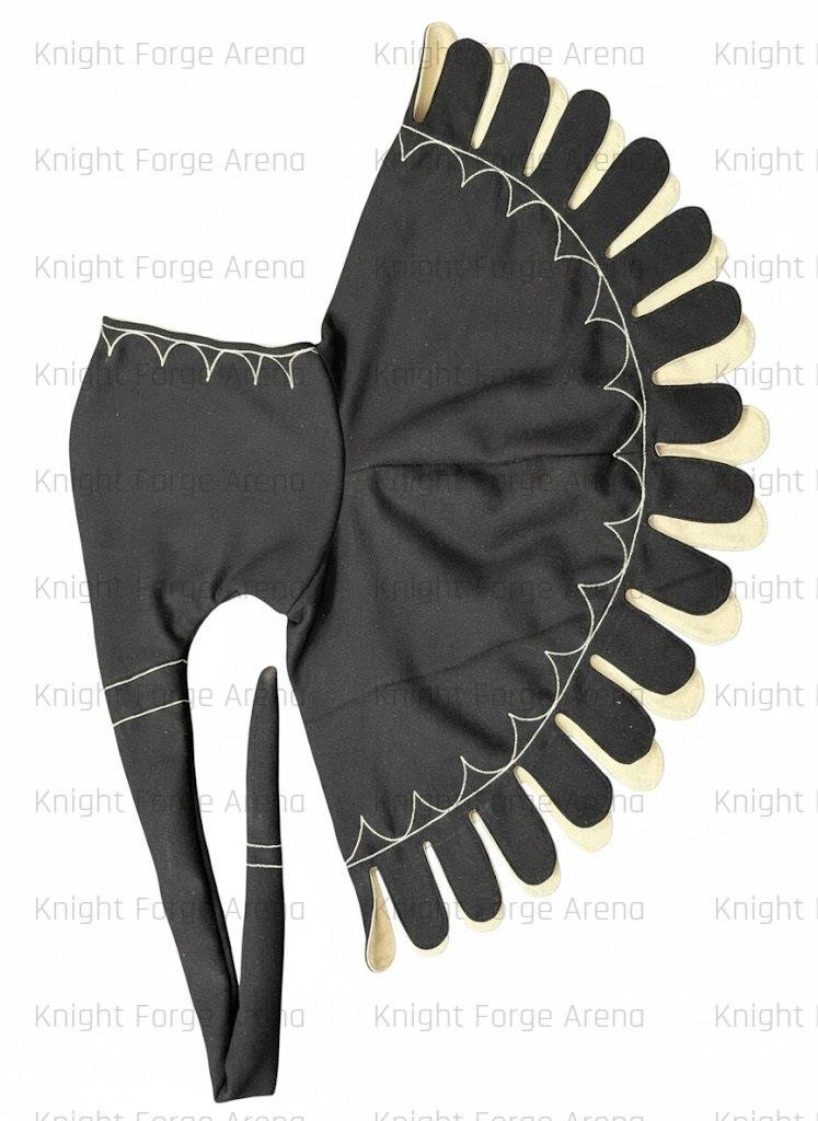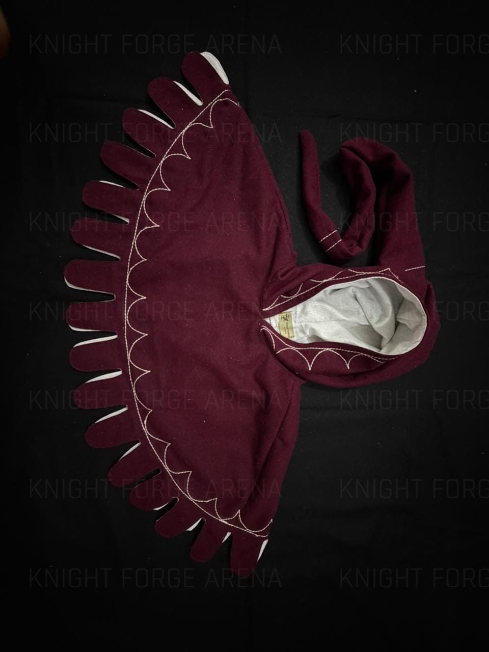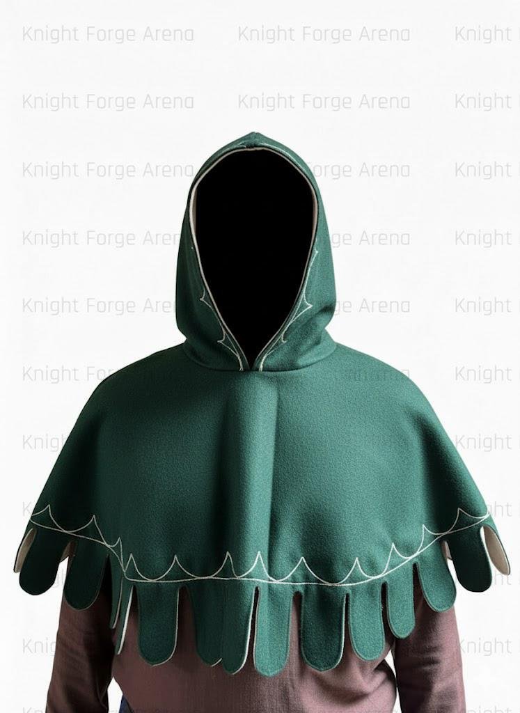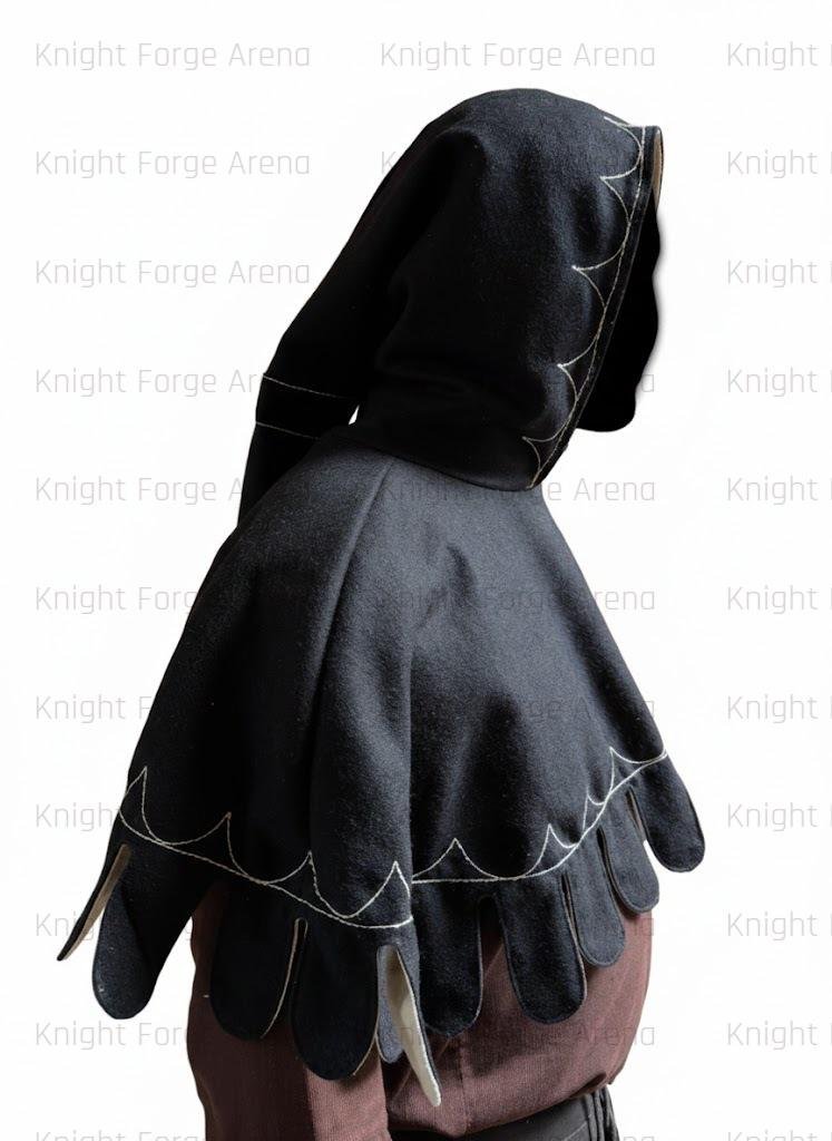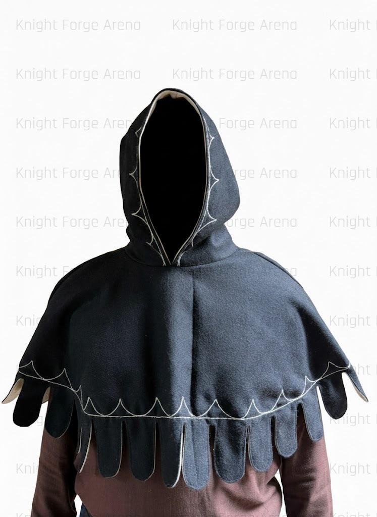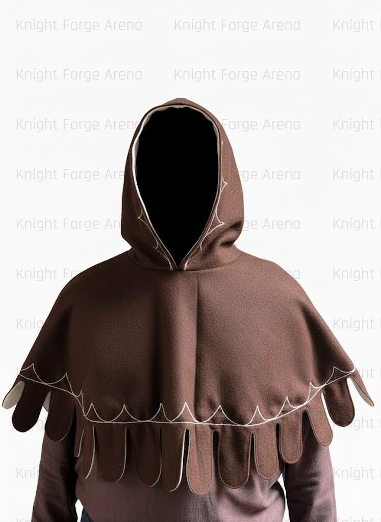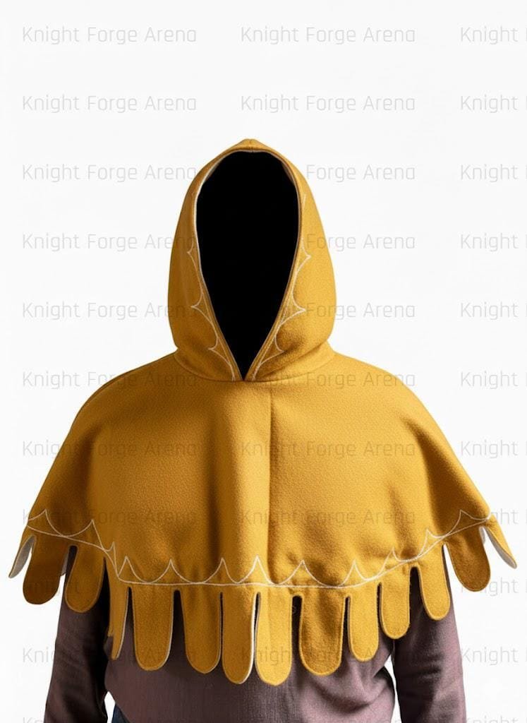 Medieval Dagged Gugel KFA-1018 | Handcrafted Padded Hooded Cowl Elevate your historical kit with the KFA-1018 Medieval Dagged Gugel, a striking blend of 14th-century fashion and functional protection. This distinctive hooded cloak is defined by its “dagged” or scalloped edges, a decorative style favored by knights, nobles, and wealthy merchants of the Middle Ages.1Expertly handcrafted, the KFA-1018 serves as a statement piece that bridges the gap between rugged utility and medieval elegance. Whether you are walking the grounds of a Renaissance Fair or portraying a high-status character in a LARP campaign, this gugel ensures you stand out with authentic period flair. Key Design Features :Distinctive Dagged Edging: The precision-cut scalloped borders provide a sophisticated, high-medieval silhouette that was the height of fashion during the 14th and 15th centuries. Premium Padded Construction: Unlike thin costume hoods, this gugel features high-quality padding, offering extra warmth for outdoor festivals and a layer of protection under head-armor or helmets. Versatile Shoulder Mantle: The wide cowl design drapes elegantly over the shoulders, providing a wind-resistant barrier and adding depth to any tunic or gambeson ensemble. Authentic Handcrafted Quality: Made from durable, breathable fabrics with reinforced stitching, ensuring this accessory survives the rigors of camp life and combat reenactment. Unisex Silhouette: A “must-have” for any medieval wardrobe, designed to suit both men and women across various historical and fantasy personas. Technical Specifications Feature Details Model NumberKFA-1018MaterialHeavy-Duty Cotton / Padded Canvas Blend Edge Style Traditional Medieval Dagged (Scalloped)Historical Period14th – 15th Century (High Middle Ages)Closure Slip-on / Over-the-head Design Best For Renaissance Fairs, LARP, Stage Theater, Medieval Weddings The Perfect Finisher for Your Persona The KFA-1018 is the ideal “finishing piece” for your outfit. It works perfectly for: The Noble Traveler: Pair it with a fine wool tunic and a belt to show your status. The Fantasy Ranger: Its unique edges add a “woodland” or “elven” touch to ranger-style gear. The Knight at Rest: A comfortable head-covering for when you’ve removed your steel Great Helm.Note on Craftsmanship: Every Gugel is handmade by skilled artisans. Slight variations in the dagging shape or fabric hue are natural characteristics of the production process, making each KFA-1018 a unique piece of wearable history.