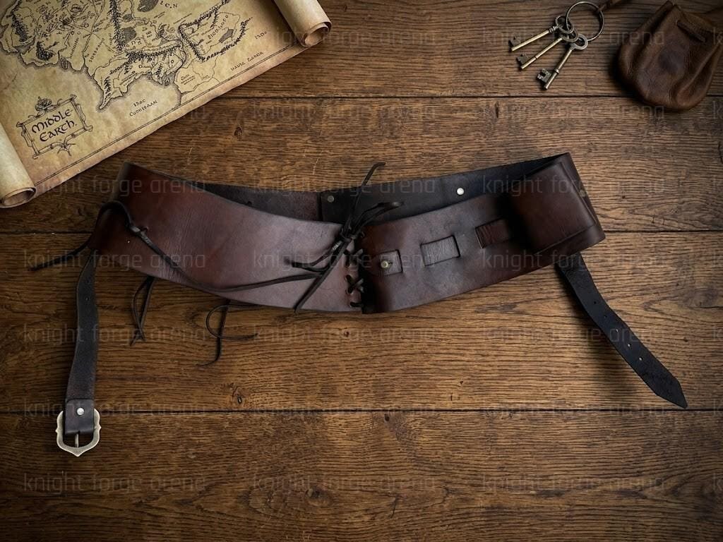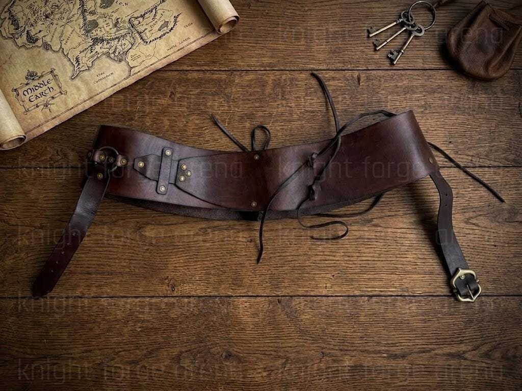 Authentic Aesthetic: Features a wide cincher silhouette with hand-set brass studs and rings, capturing a classic medieval fantasy “Witcher” style.