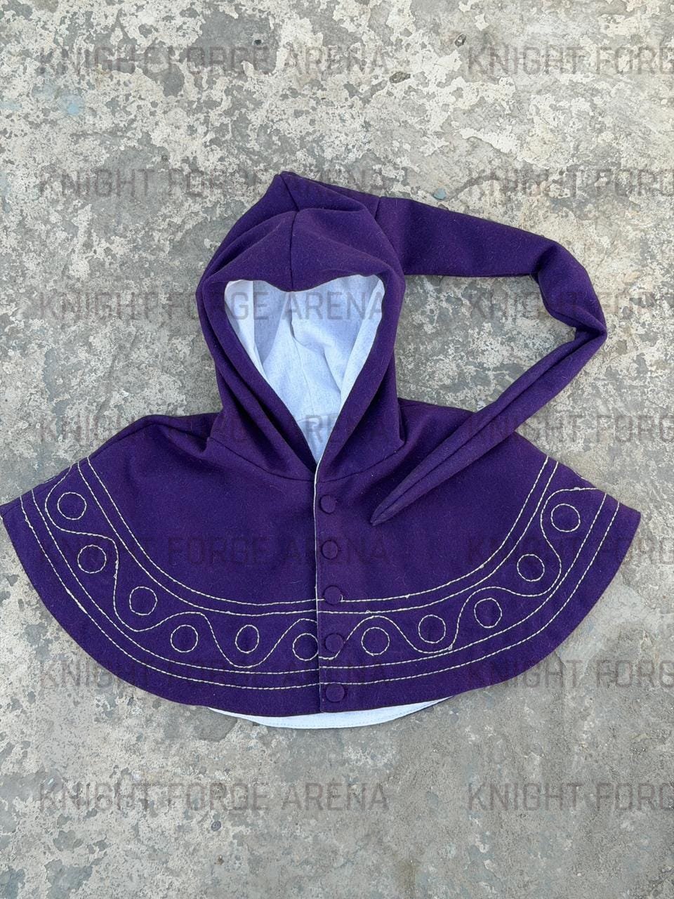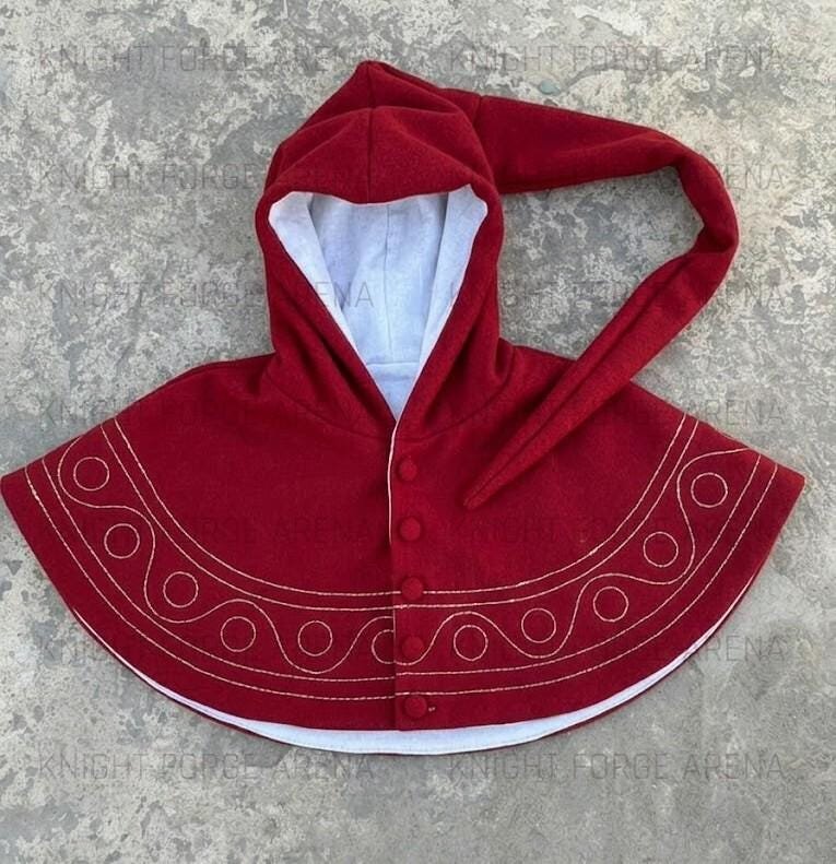 Step into the shoes of a wanderer, warrior, or noble with this meticulously handcrafted Wool Medieval Hood. Known historically as a Gugel, this piece features a distinctive dagged edge (the scalloped hem) and a cowl, offering a level of structure and comfort that standard hoods lack.