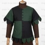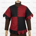 Artisanal Detailing: Features distinctive leaf-shaped dagging on both the short sleeves and the bottom hem, providing a sharp, jagged profile typical of 14th and 15th-century “Jupon” styles.