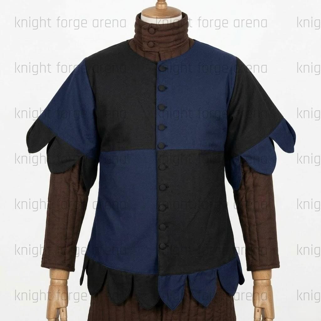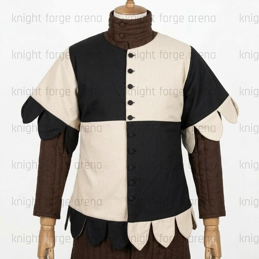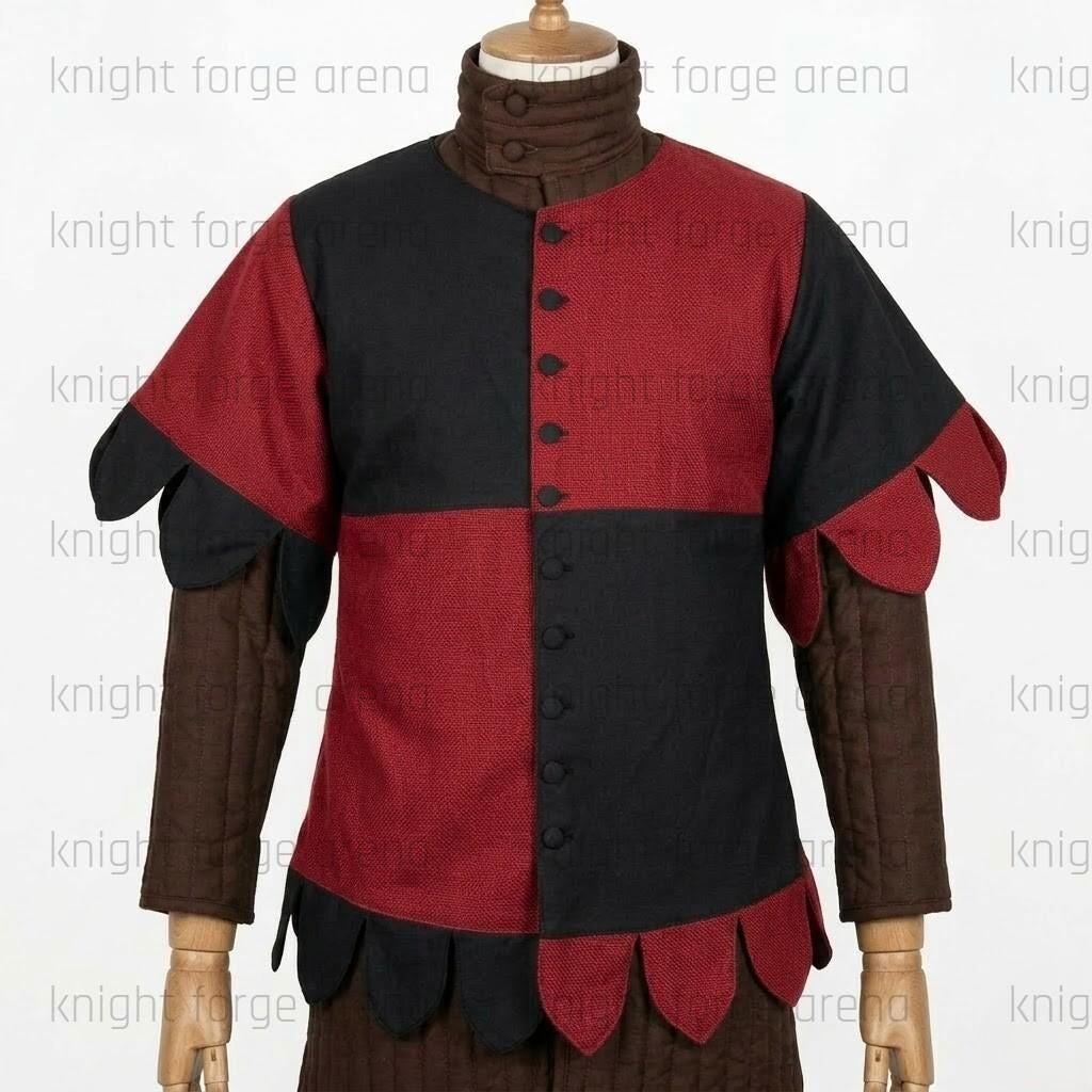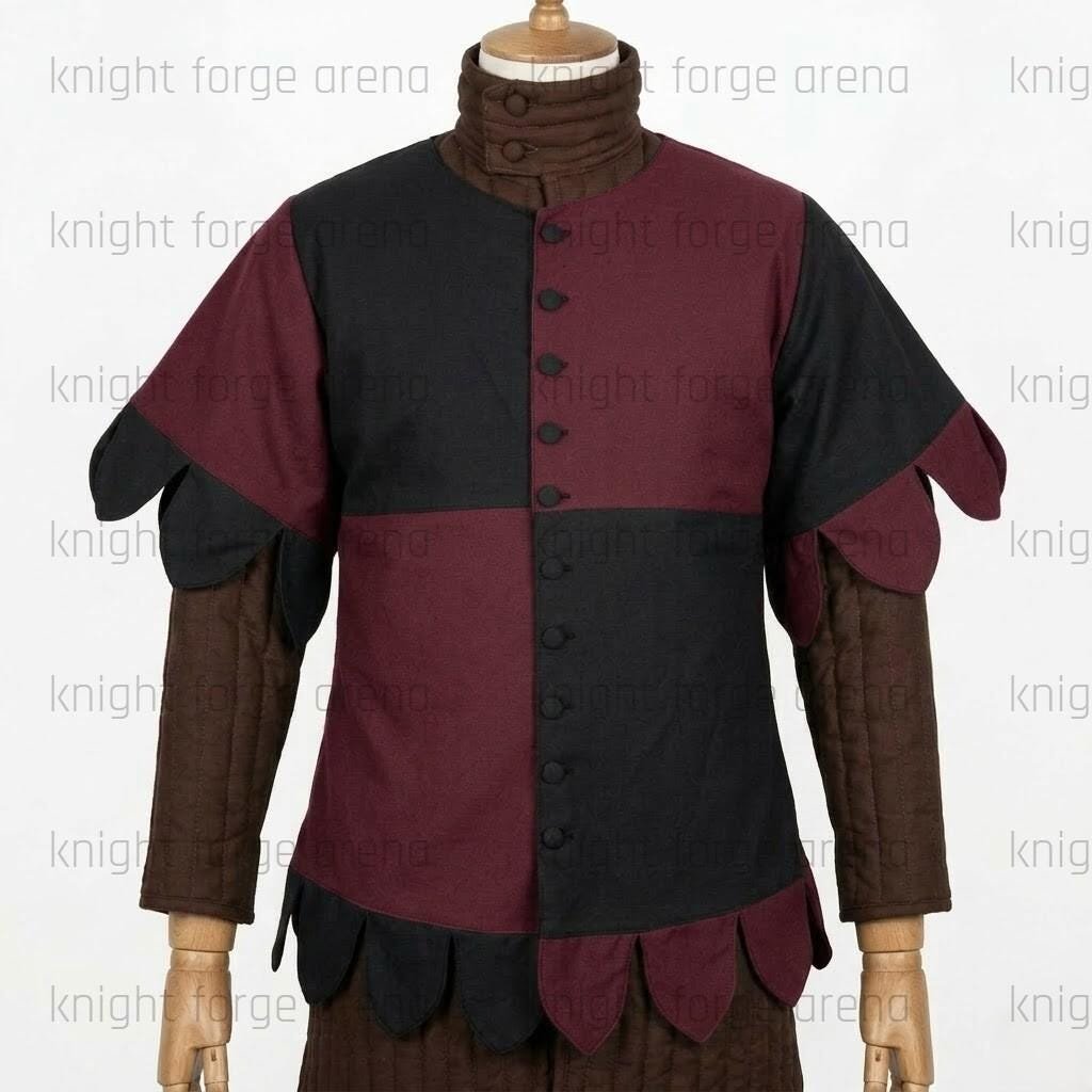 Elevate your medieval kit with the KFA-1055 Mi-Parti Quartered Surcoat—a masterclass in 15th-century style and rugged durability.