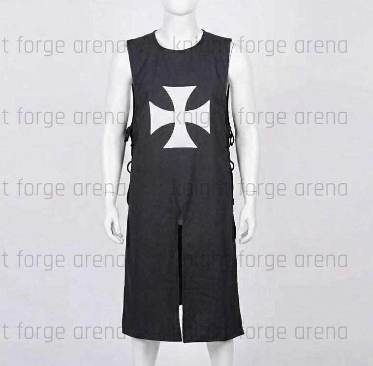 Medieval Crusader Surcoat Tabard – Black Cotton Canvas with Red Cross, Reenactment Costume