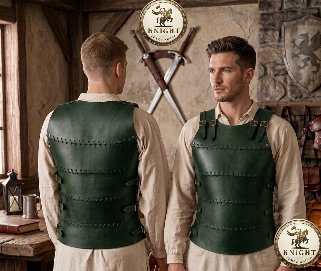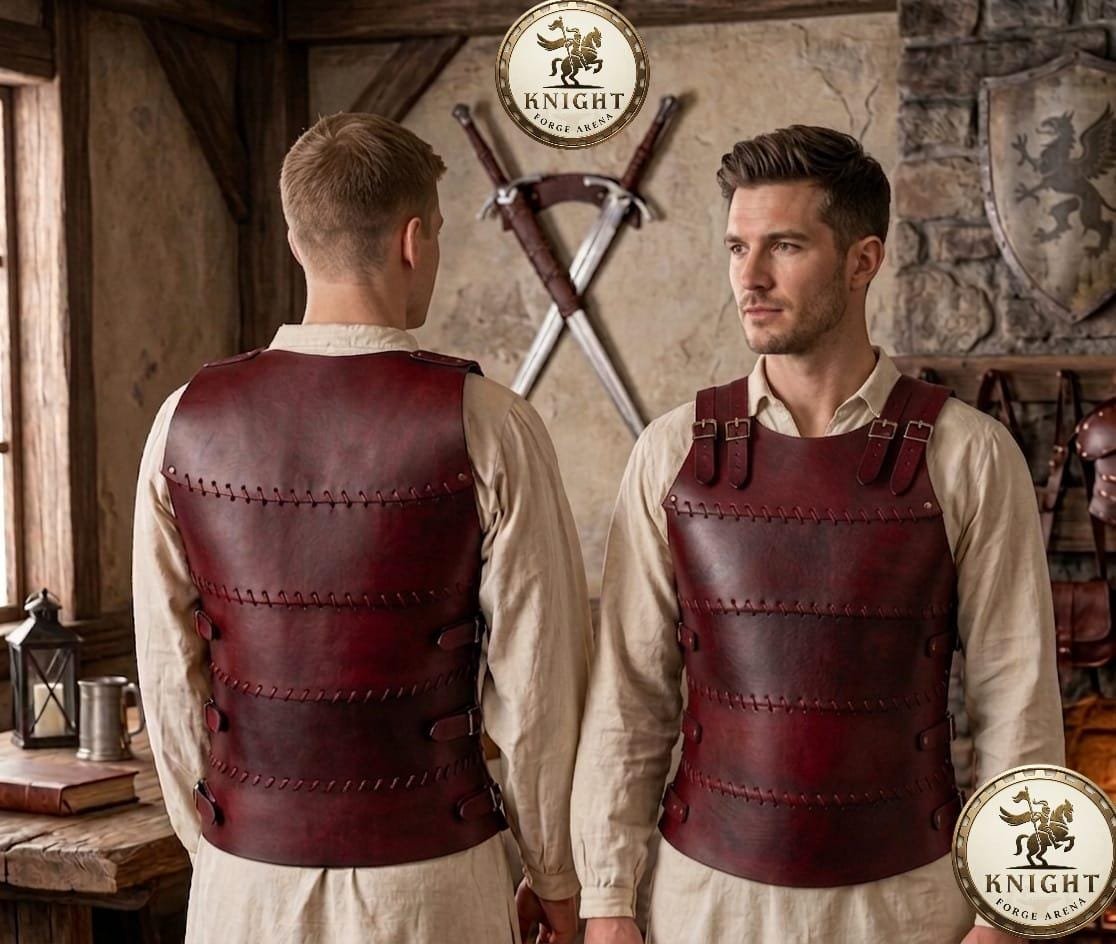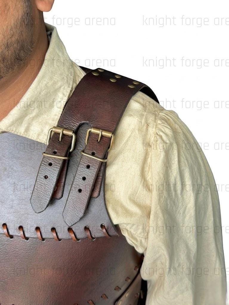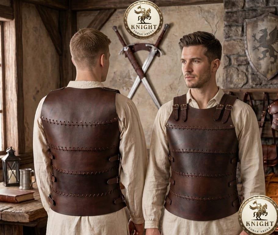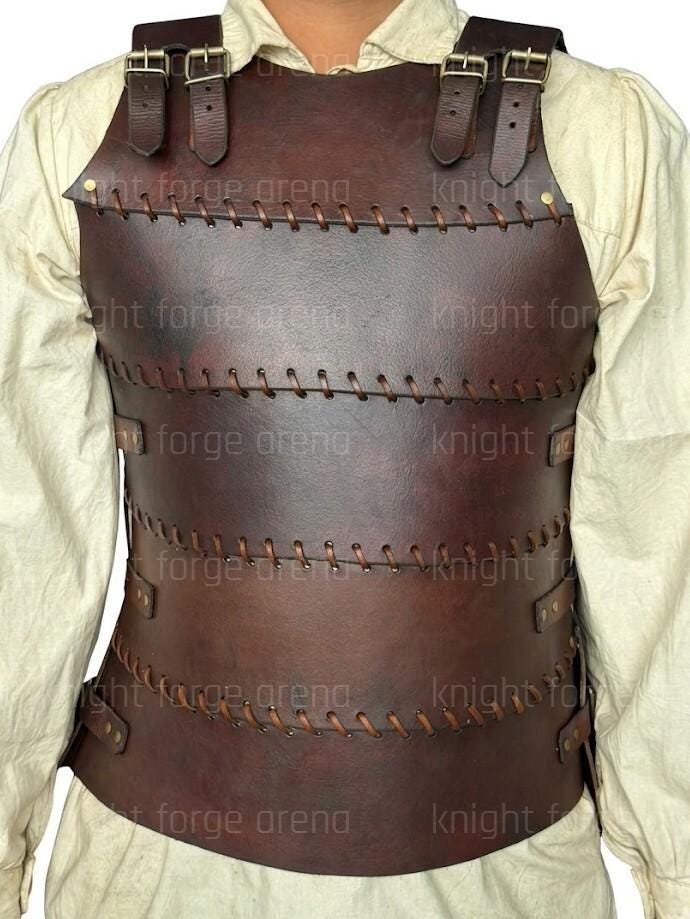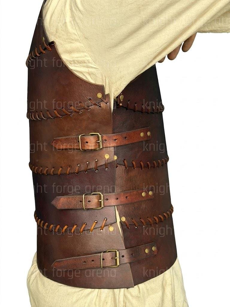 Handcrafted Medieval Leather Armor – 100% Vegetable Tanned Cuirass with Brass Accents