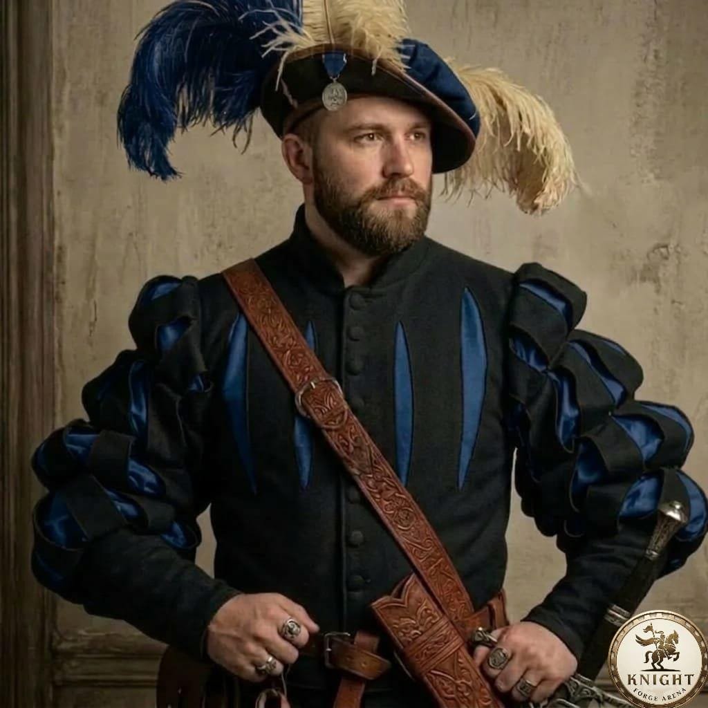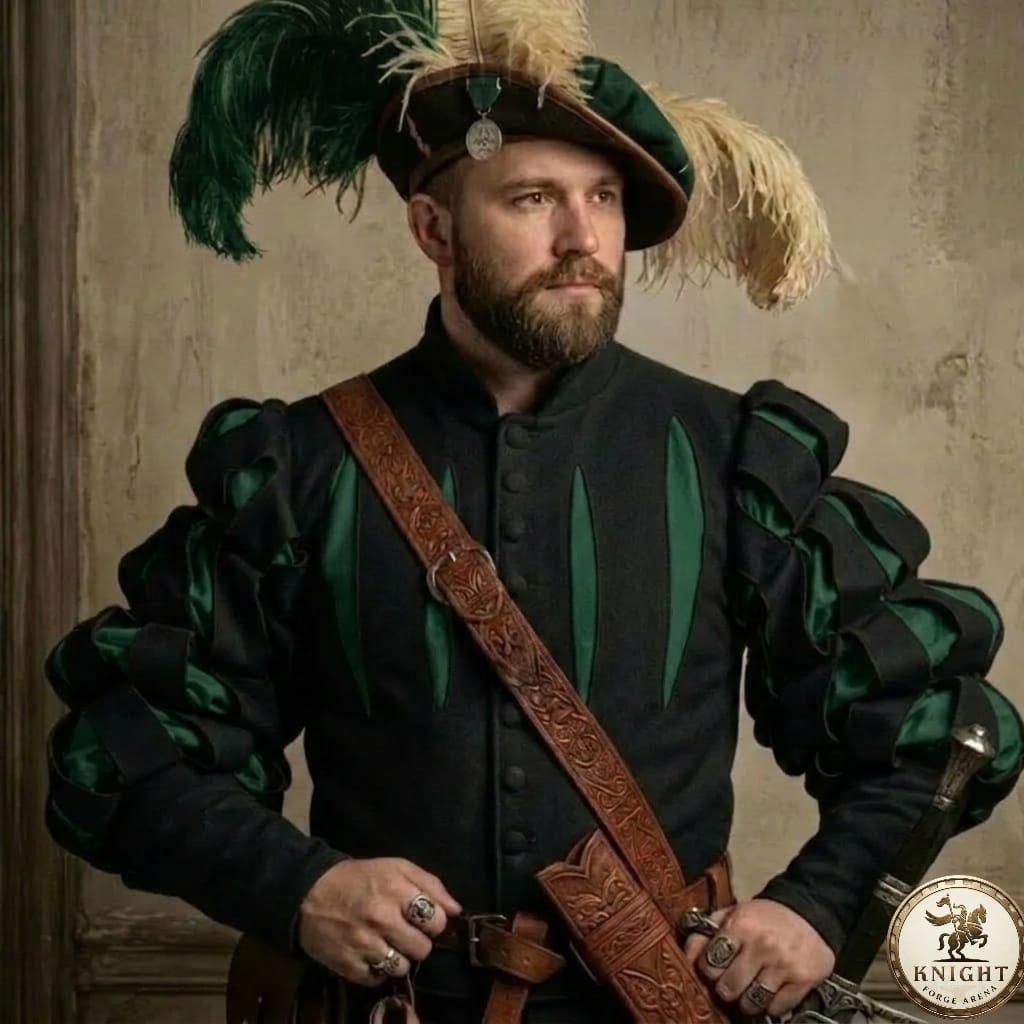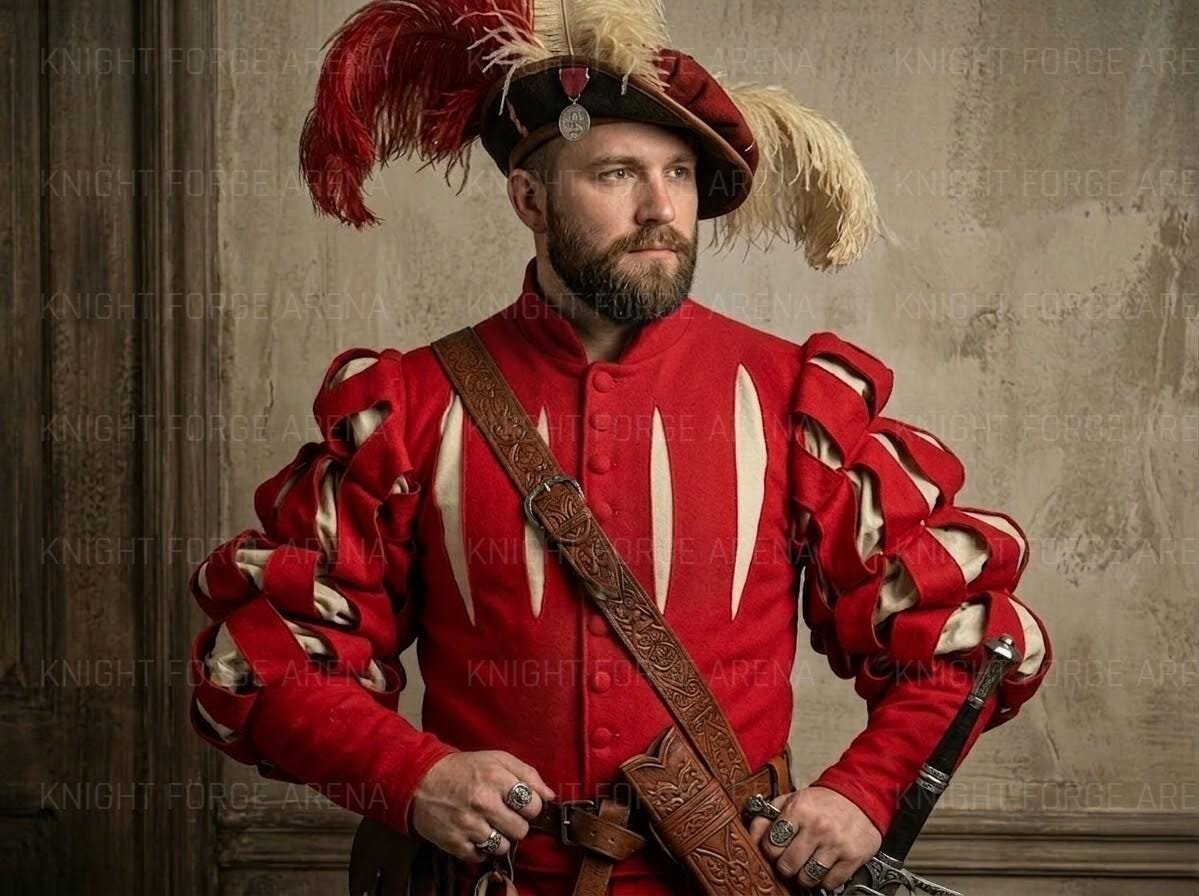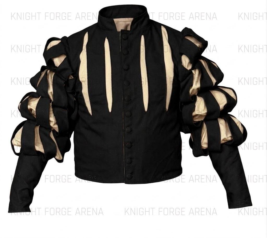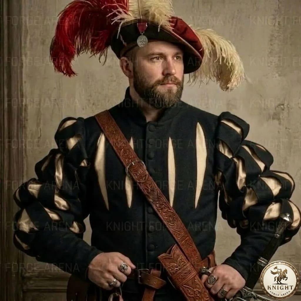 Iconic Slashed Design: The sleeves and chest feature the classic “Slit and Puff” aesthetic, revealing the inner lining for a high-contrast, authentic Renaissance look.
