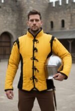 Crafted with meticulous attention to detail, this jacket features heavy-duty quilting and unique brass-tipped lacing, offering a touch of noble elegance to a warrior’s essential gear.