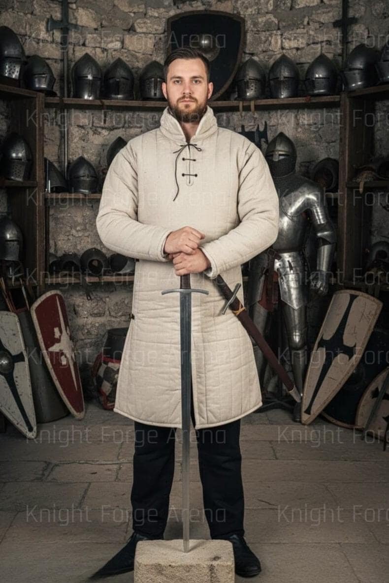 13th Century Natural Padded Medieval Gambeson | Maciejowski Bible Style