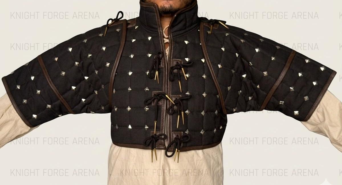 Elevate your Witcher Cosplay or Medieval Reenactment kit with the KFA-1040 Studded Gambeson. This heavy-duty padded cotton canvas arming doublet is designed for the serious costumer who demands both historical silhouette and fantasy flair. Featuring genuine leather trim and reinforced metal studs, it’s the perfect protective layer for LARP combat, SCA events, or your next Renaissance Fair.