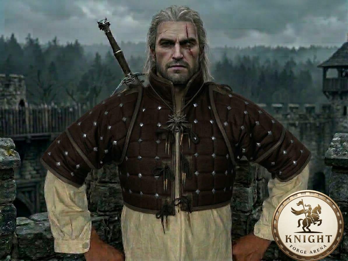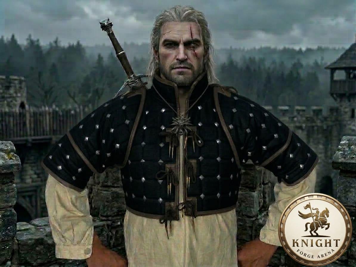 Inspired by the gear of legendary monster hunters, the studded pattern and leather accents make this the ultimate base for a Geralt of Rivia or Vesemir inspired cosplay.