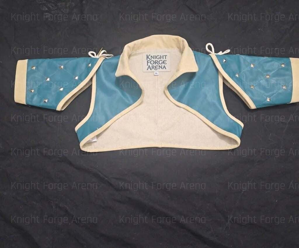 Triss Merigold Leather Bolero – Turquoise & cream Witcher Cosplay Jacket – Handcrafted Fantasy Armor – KFA-1033