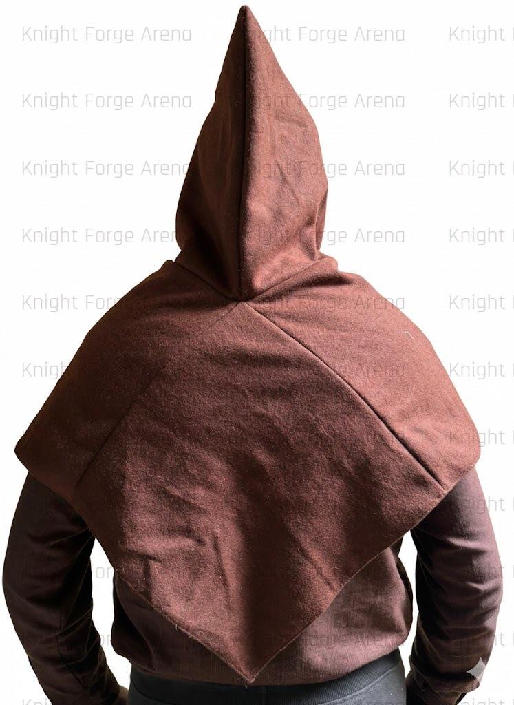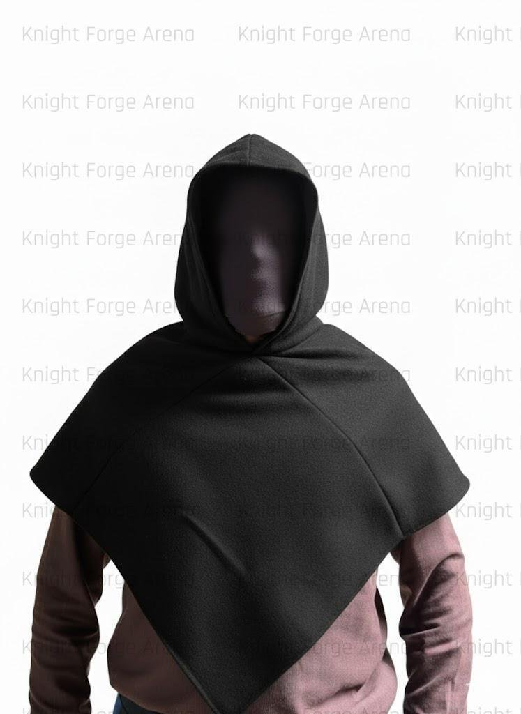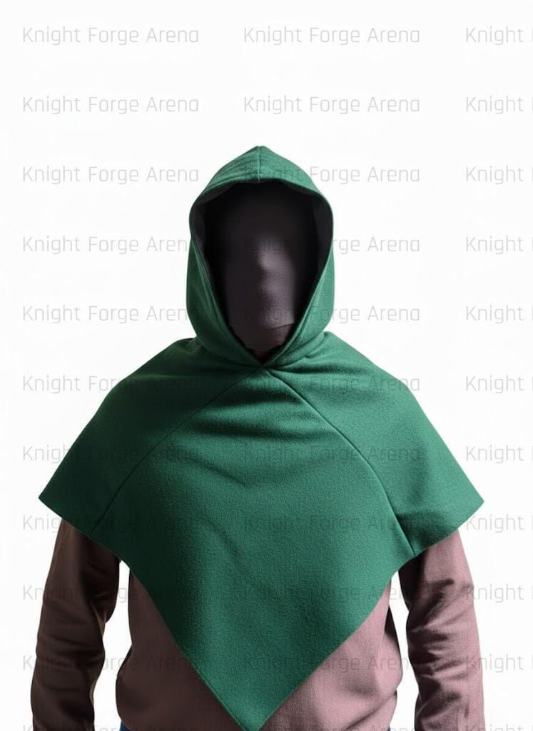 Vanguard Medieval Wool Hood (KFA-1019) | Authentic Skjoldehamn Style Defy the elements with the Vanguard Medieval Wool Hood, a masterful recreation of one of the most famous textile finds in history. Modeled after the 10th-century Skjoldehamn find, this hood (or “Gugel”) features the iconic square-pattern construction that provides exceptional coverage for the head, neck, and shoulders. Crafted from premium, heavy-weight wool, the KFA-1019 is more than a costume accessory—it is a functional piece of outdoor gear designed to keep you warm, dry, and historically accurate during late-season Renaissance Fairs, winter LARP events, or rugged reenactments. Why Choose the KFA-1019 Vanguard Hood? Historically Authentic Design: Based on the Skjoldehamn archaeological discovery, featuring the characteristic “square” inset construction that sits comfortably on the shoulders without bunching. Premium Wool Construction: Naturally water-resistant and wind-proof, our high-quality wool provides superior insulation even when damp—essential for unpredictable outdoor weather. Superior Coverage: The wide shoulder mantle (cowl) acts as a mini-cape, protecting your chest and back from drafts and light rain, making it the perfect companion for tunics or gambesons. Versatile “Vanguard” Aesthetic: A staple for Norse, Viking, or Early Medieval personas. Its clean lines also make it suitable for Rangers, Woodsmen, and generic fantasy characters. Handmade Durability: Every hood is handcrafted with reinforced stitching to ensure it survives the rigors of camp life and historical trekking. Technical Specifications Feature Details Model NumberKFA-1019MaterialHigh-Quality Padded Wool Blend Historical Pattern Skjoldehamn (10th-11th Century)Fit Unisex / One Size Fits Most Best For Winter Reenactment, LARP, Bushcraft, Renaissance Fairs The Essential Cold-Weather Accessory. In the Viking Age, a hood was the difference between comfort and misery on the trail. The KFA-1019 captures that utility perfectly. Because wool is naturally breathable, it prevents overheating during activity while retaining body heat when you’re stationary around the campfire.1Artisan Note: Due to the handcrafted nature of this wool garment and the variation in natural fibers, slight differences in color and texture may occur, adding to the unique, rustic charm of your historical kit.