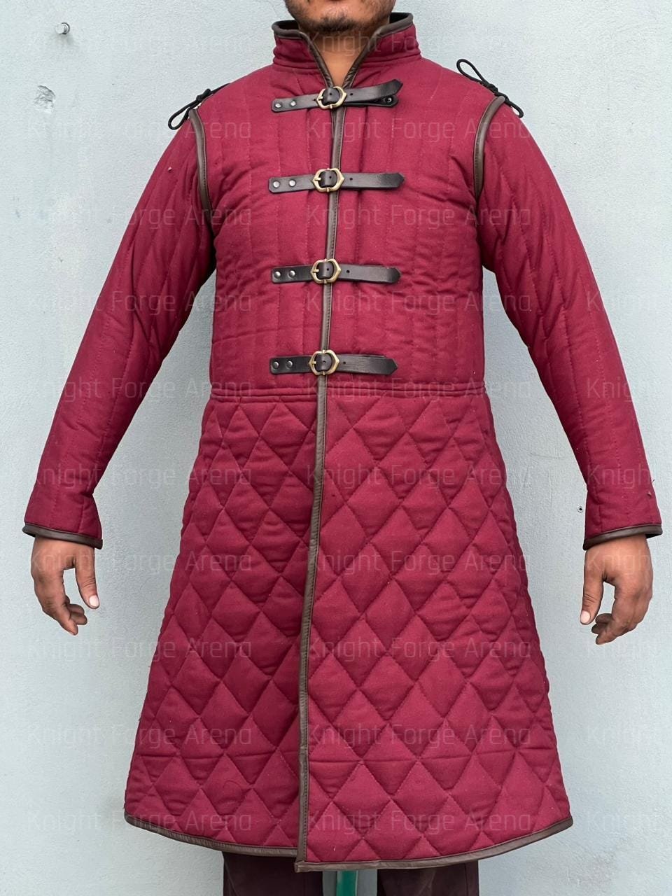 Handmade 14th Century Gambeson – Heavy Duty Medieval Padded Armor, LARP Combat Jacket