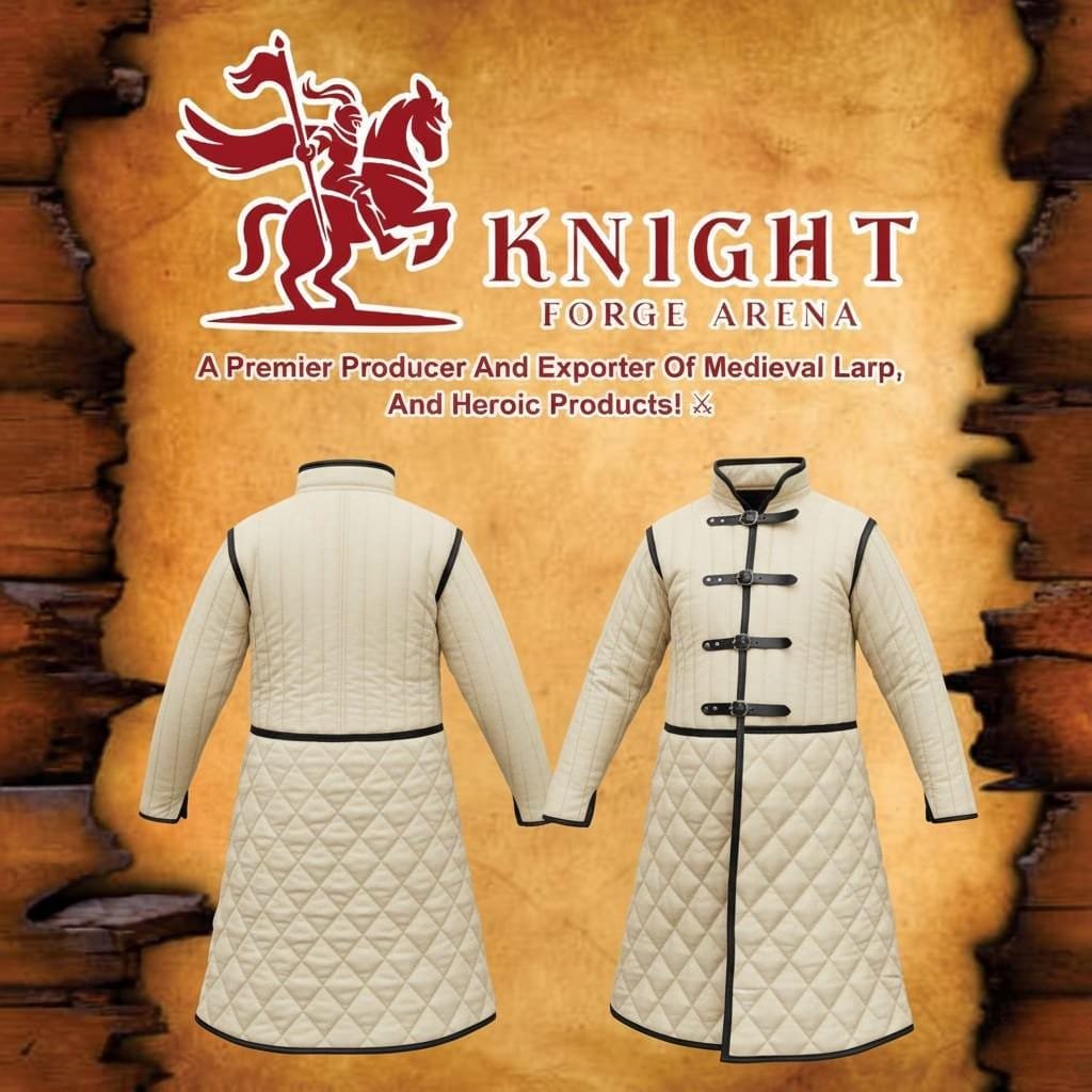 Viking Padded Gambeson with Genuine Leather Detail | KFA-1005Forge your path with the KFA-1005 Viking Padded Gambeson, a masterpiece of historical craftsmanship designed for the modern warrior. Combining the raw aesthetic of the North with professional-grade protection, this gambeson features genuine leather trims that elevate it from a simple costume to a durable piece of functional armor. Whether you are bracing for a shield wall in a reenactment or completing a high-end cinematic cosplay, the KFA-1005 offers the perfect balance of mobility and impact resistance. Why Choose the KFA-1005?Premium Leather Trims: Accented with genuine leather along the edges and closure points, providing superior reinforcement in high-wear areas and a rugged, authentic look. Heavy-Duty Padding: Multi-layered cotton construction provides an essential buffer against blows and ensures comfort when worn under heavy chainmail or plate armor. Superior Mobility: Tailored specifically for combatants, the sleeve and shoulder design allow for unrestricted movement—perfect for axe-swinging or sword-fighting. Breathable Comfort: Made from high-quality natural fibers that wick away moisture, keeping you cooler during intense battles or long days at the Faire. Technical Specifications Feature Details Model NumberKFA-1005Shell Material Durable Cotton Canvas Detailing Genuine Leather Trims & Fasteners Padding Layered Cotton Filling Style Early Medieval / Viking Age / Norse Best For HEMA, Full-Contact Reenactment, LARP, Film/Stage Versatile Warrior Foundation The KFA-1005 is designed to be the backbone of your kit. Its neutral yet striking design makes it suitable for a wide range of characters, from a wealthy Viking Jarl to a seasoned mercenary. The leather fasteners are not only decorative but built to withstand the tension of active movement. Note on Authenticity: Because we use natural fabric and genuine leather, slight variations in color and texture are a hallmark of our handcrafted process, ensuring your gambeson is as unique as your character.
