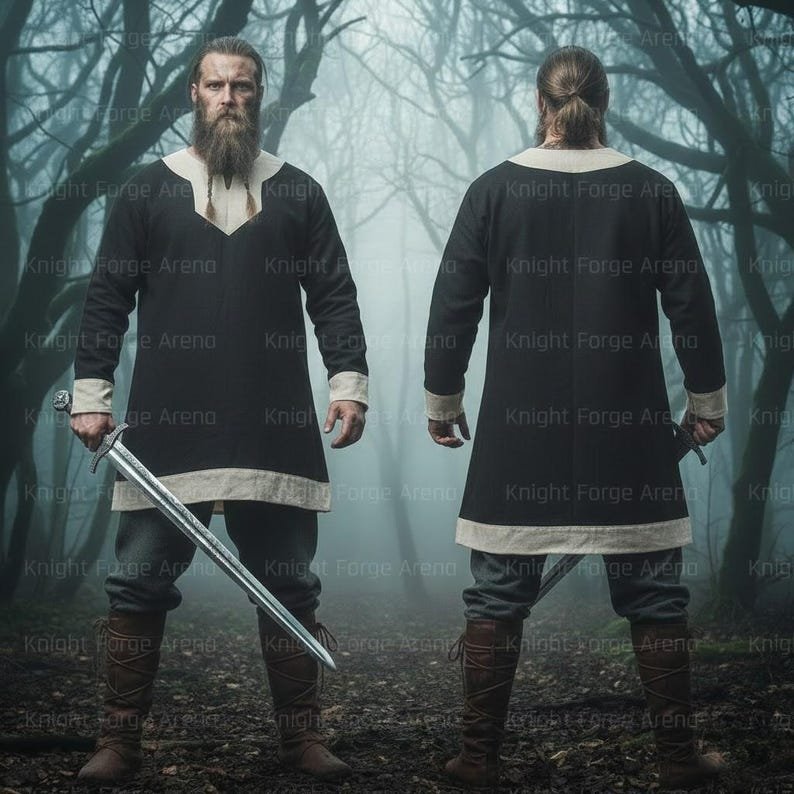 KFA-1012 Viking Tunic with Medieval Keyhole Neck | Norse Warrior Shirt Embrace the spirit of the North with the KFA-1012 Viking Tunic. A staple for any historical wardrobe, this tunic features the iconic medieval keyhole neckline, offering an authentic silhouette that transitioned from the Viking Age through the early Middle Ages. Expertly crafted for comfort and durability, this tunic is designed to be your go-to garment for Renaissance Fairs, LARP battles, and historical reenactments. Whether worn as a base layer under armor or as a standalone statement piece, the KFA-1012 ensures you look the part of a seasoned traveler or a fierce warrior. Product Features Iconic Keyhole Design: The classic “keyhole” neck provides a period-accurate look while allowing for better airflow and comfort during warm-weather events. Premium Cotton Fabric: Made from high-quality, breathable fabric that feels soft against the skin but is tough enough to withstand the rigors of the field. Versatile Unisex Fit: Designed to flatter all body types, making it an essential piece for both men and women building a Norse or Medieval persona. Renaissance Fair Ready: Lightweight and easy to move in, it’s the perfect choice for all-day wear at festivals, stage performances, or cosplay conventions. Technical Specifications Feature Details Model NumberKFA-1012MaterialHigh-Grade Breathable Cotton Neckline Style Traditional Medieval Keyhole Historical Era Viking Age / Early Medieval Care Instructions Machine Washable (Cold) / Hang Dry Recommended Style & Customization The beauty of the KFA-1012 lies in its simplicity. It serves as a “blank canvas” for your character :The Raider: Pair with a leather belt, an axe frog, and fur mantles. The Villager: Wear simply with linen trousers and leather turn shoes. The Noble: Accent with historical brooches or embroidery to show your status. Note on Artisanal Variation: As our tunics are handcrafted, please allow for slight variations in fabric color due to studio lighting and natural dye lots.