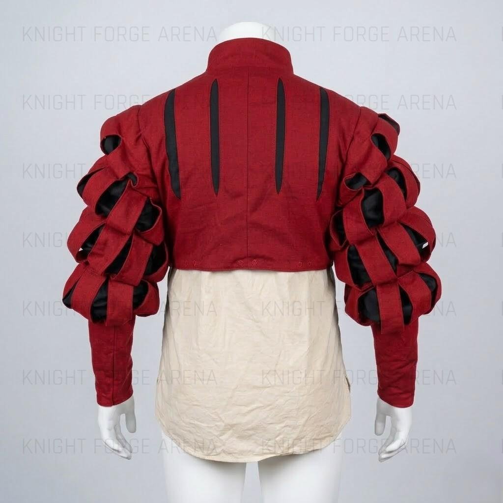 Step onto the battlefield or into the tavern with the authority of a seasoned mercenary. Our Landsknecht-inspired Battle Bodice (KFA-1046) is a masterclass in 16th-century “slash and puff” aesthetics, redesigned with a flattering cropped silhouette for the modern female warrior.